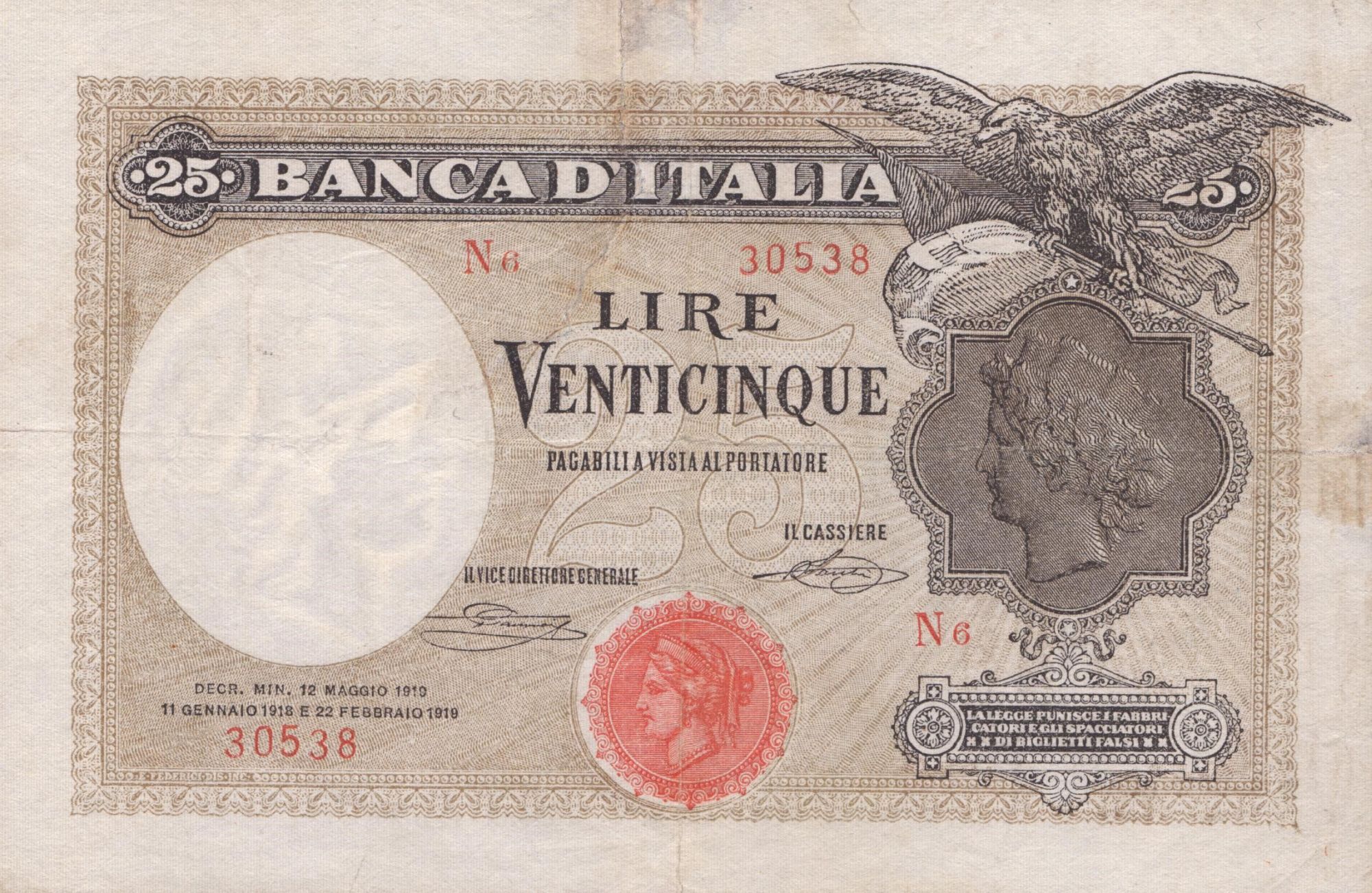 REGNO D'ITALIA. Vittorio Emanuele III (1900-1943). 25 Lire "Aquila latina" 12-05-1919