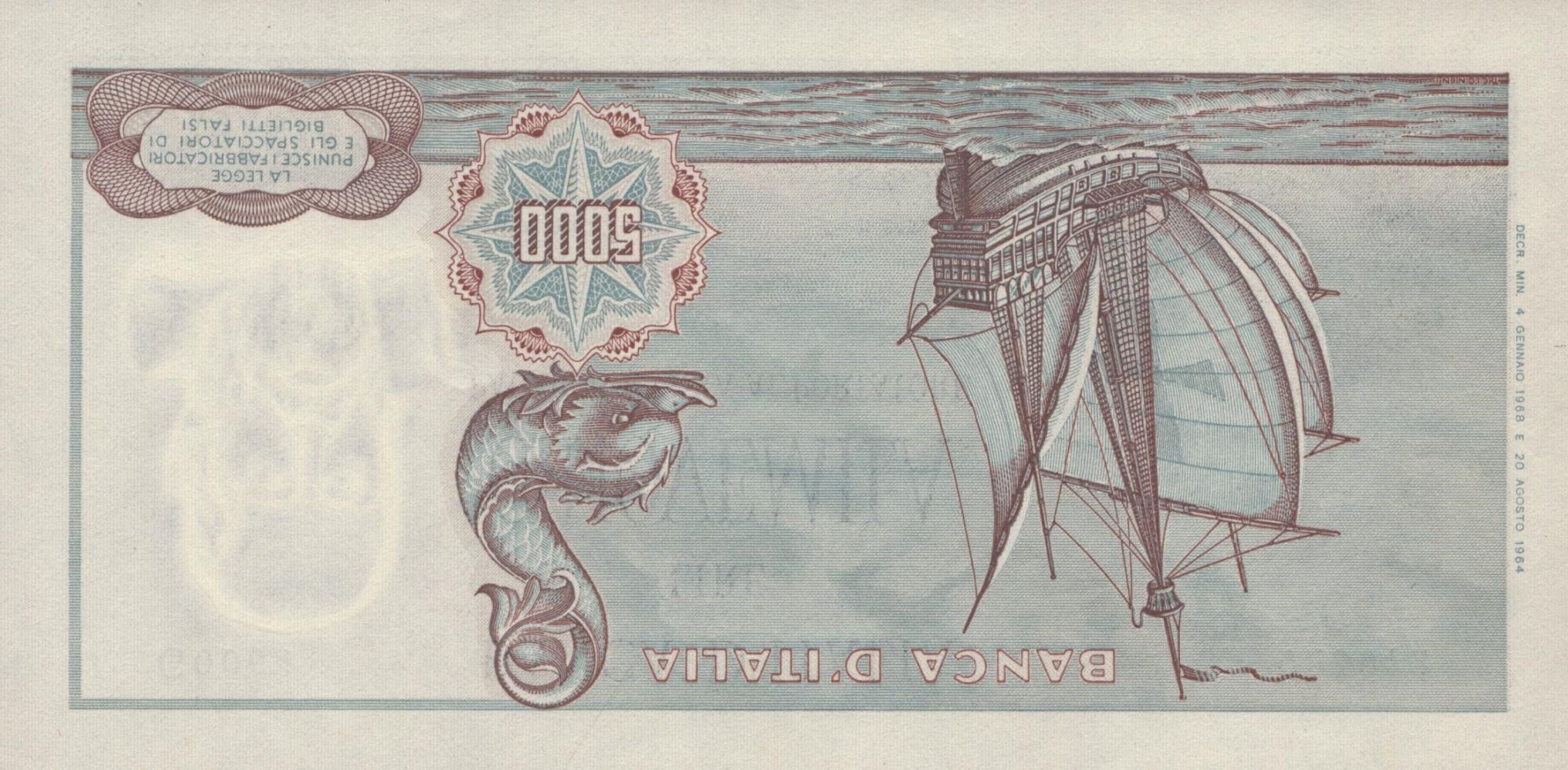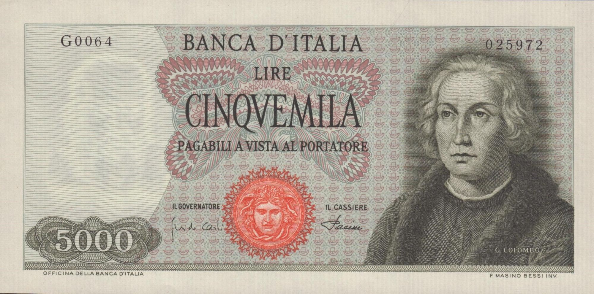 Lotto 752 | REPUBBLICA ITALIANA. 5000 Lire "Colombo - I tipo". 04-01-1968