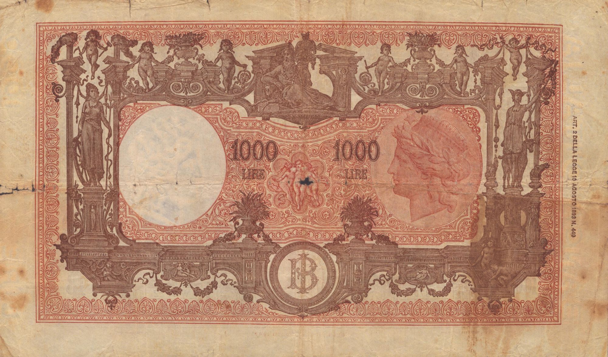 REPUBBLICA ITALIANA. 1000 Lire "Grande M - Medusa". 14-04-1948