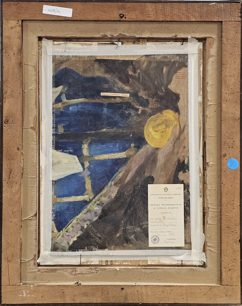 osservazioni: a tergo bozzetto dell'autore e cartiglio Mostra Retrospettiva Nicola Ciletti Autunno 1971 con pubblicazione nel catalogo della stessa