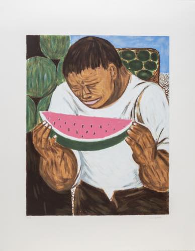 Giuseppe Migneco (Messina 1903 - Milano 1997). Mangiatore di anguria. Litografia a colori su carta. Opera firmata in basso a destra Migneco. Reca numeri di tiratura in basso a sinistra P.A. Foglio cm. 80x65. Lastra cm. 56,8x46,6.