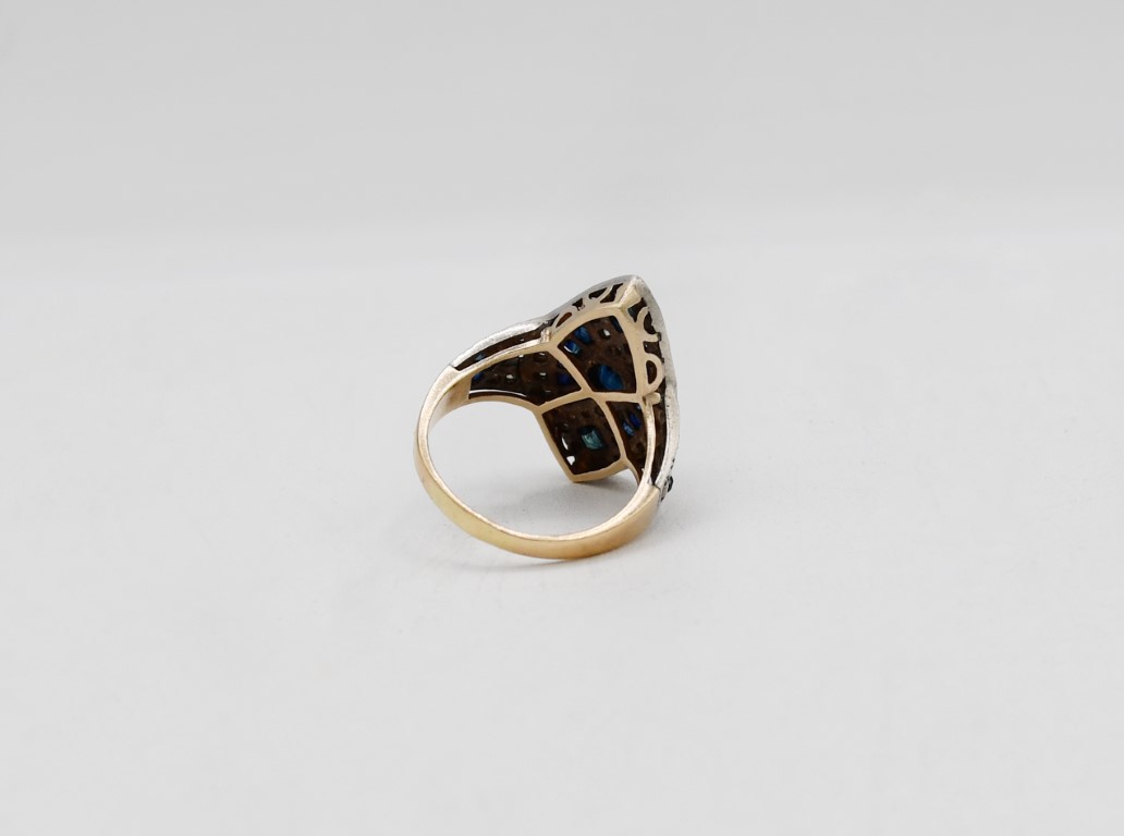 Anello in oro bianco, con zaffiri e diamanti