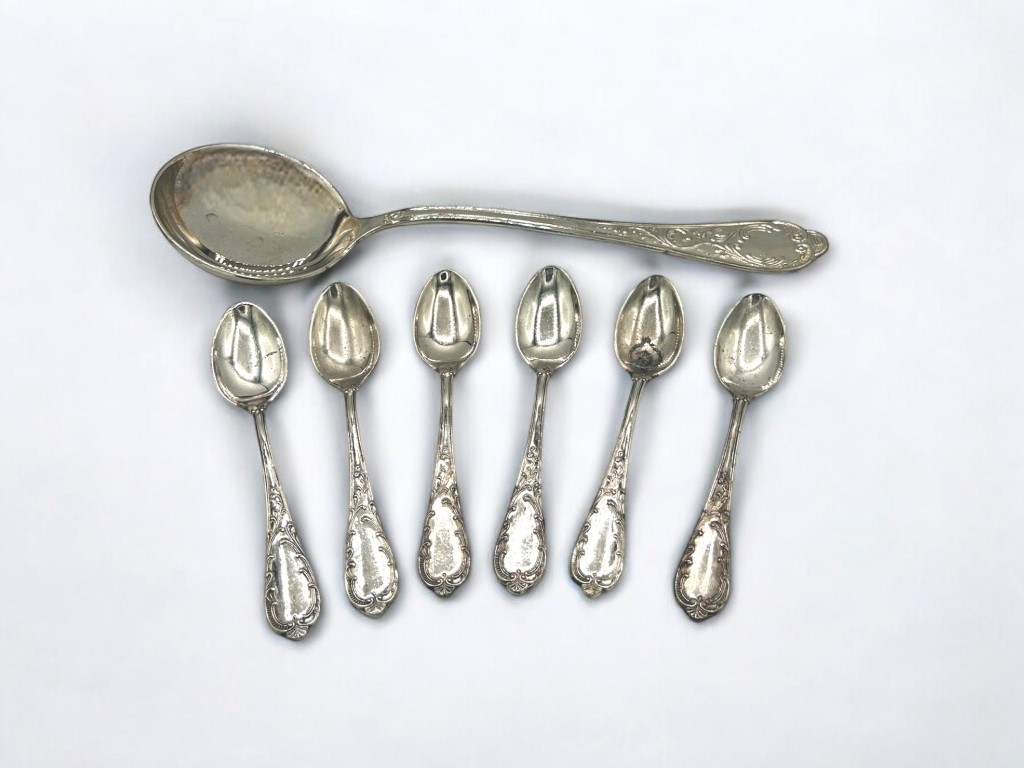 LOTTO RITIRATO: Sei cucchiaini ed un cucchiaio grande in argento 800