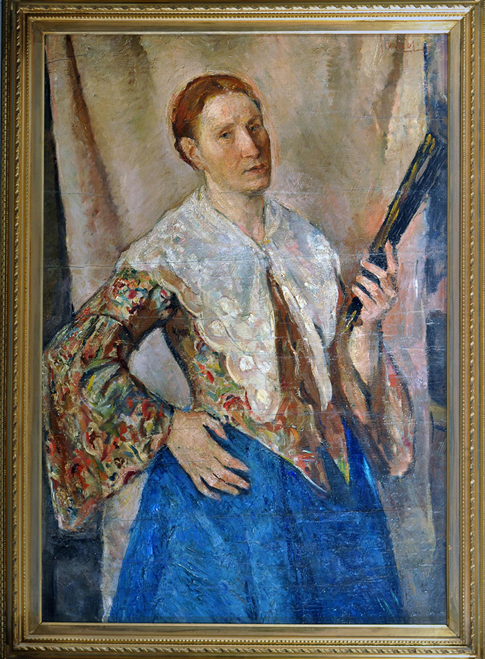 Striccoli Carlo (Altamura 1897 - Arezzo 1980) Donna del popolo olio su tavola, cm 70x100 firmato in alto a destra: Striccoli