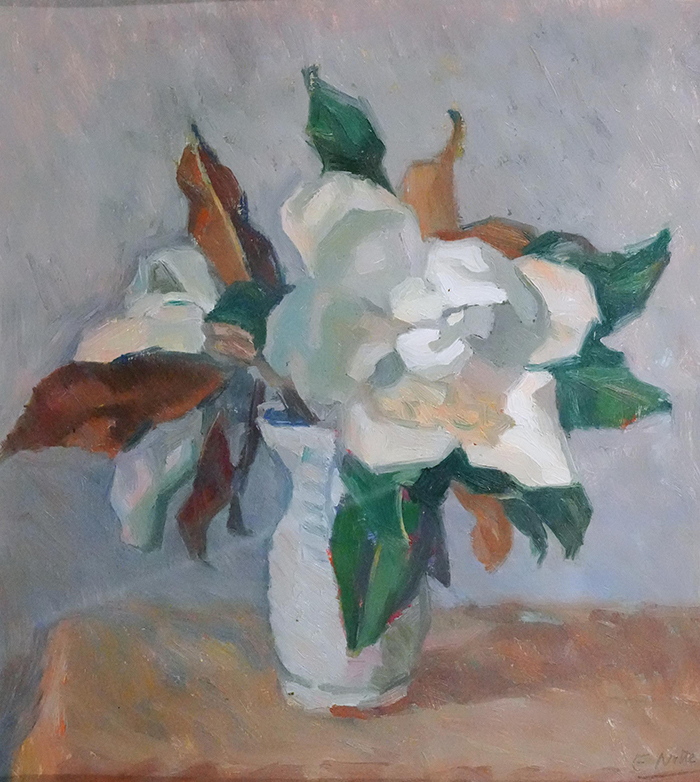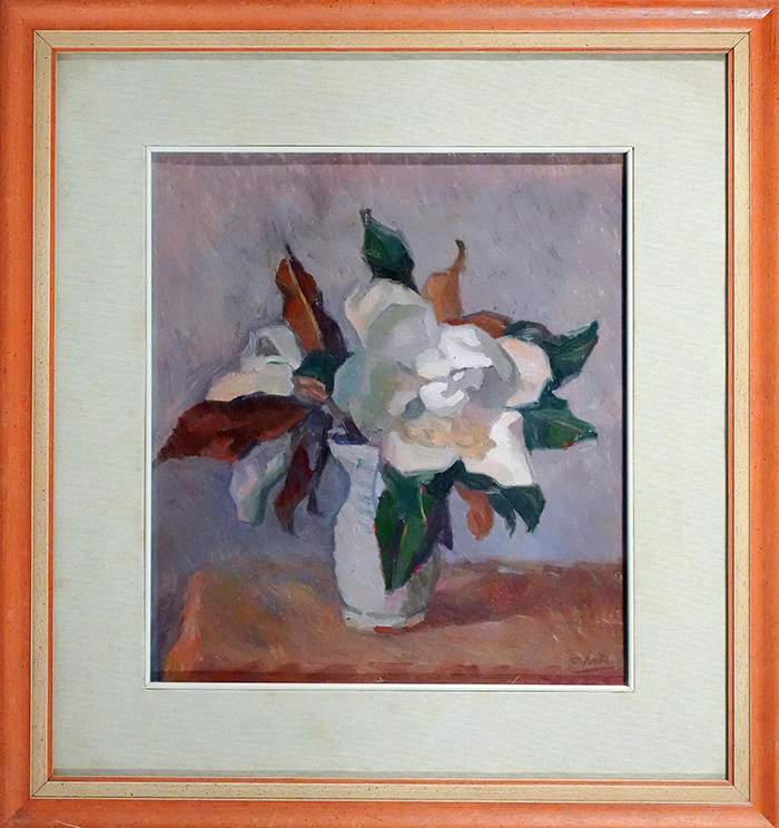 Notte Emilio (Ceglie Messapica, BR 1891 - Napoli 1982) Vaso con magnolie olio su cartone, cm 42,5x38 firmato in basso a destra; E. Notte
