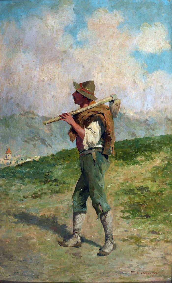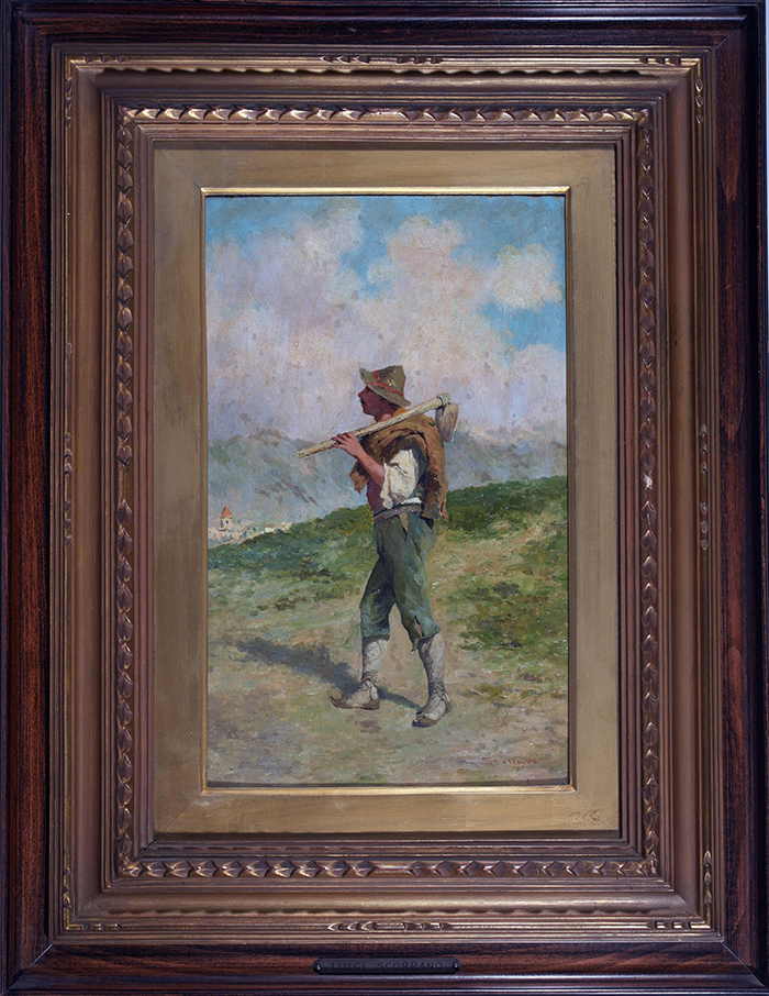 Scorrano Luigi (Lecce 1849 - Urbino 1924) Pastore olio su tavola, cm 32x20 firmato in basso a destra: Scorrano