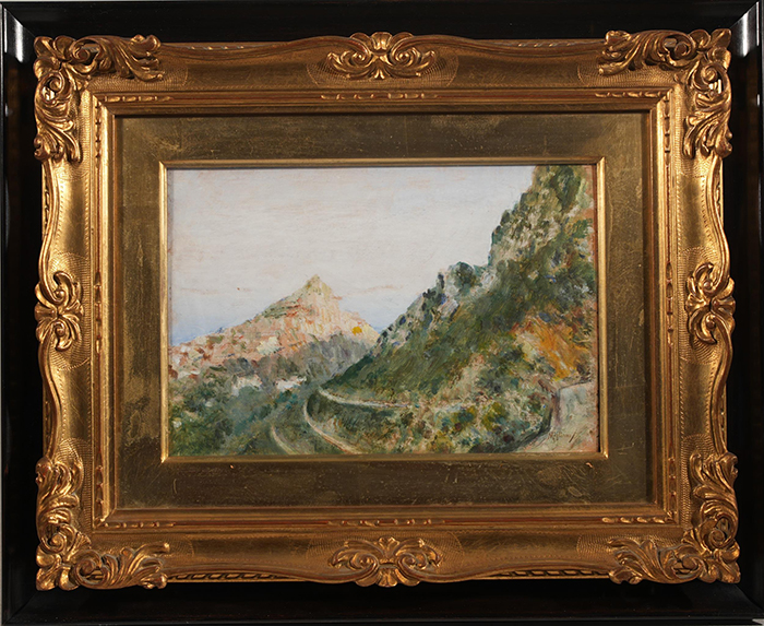 Migliaro Vincenzo (Napoli 1858 - 1938) Paesaggio di Capri olio su tavola, cm 18x25 firmato in basso a destra: Migliaro