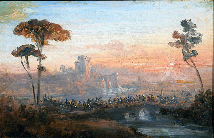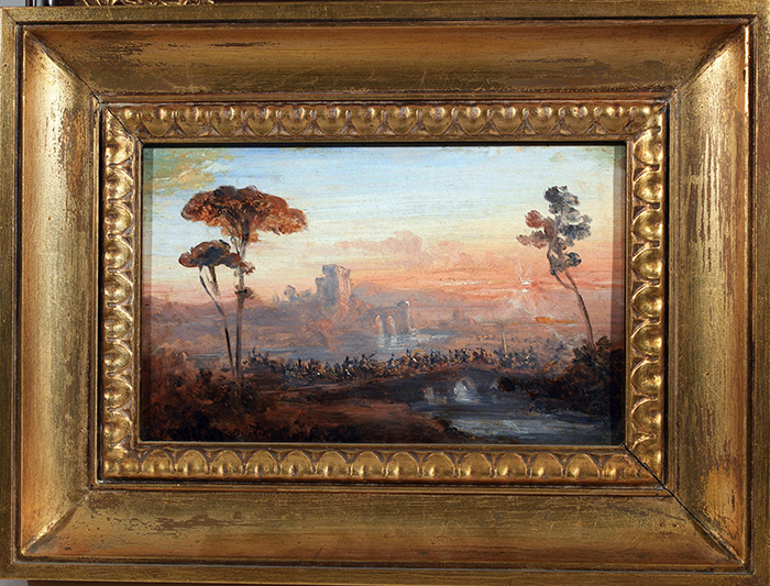 Pitloo Antonio Sminck (Arnhem 1790 - Napoli 1837) Veduta olio su tela, cm 17x27 firmato in basso asinistra: A. Pitloo