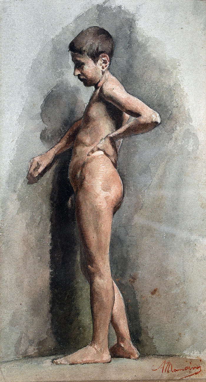 Mancini Antonio (Napoli 1852 -1930) Ragazzo acquerello su carta, cm 27,5x15 firmato in basso a destra: A. Mancini