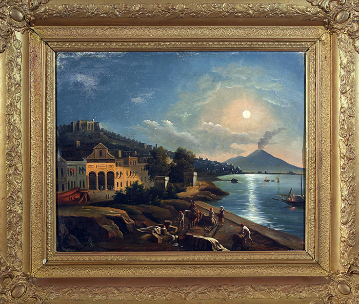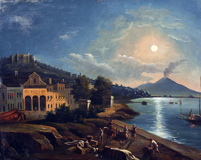 Remond Jean Charles Joseph (Parigi, 1795 - 1875) Riviera di Chiaia al chiaro di luna olio su tela, cm 40,5x32