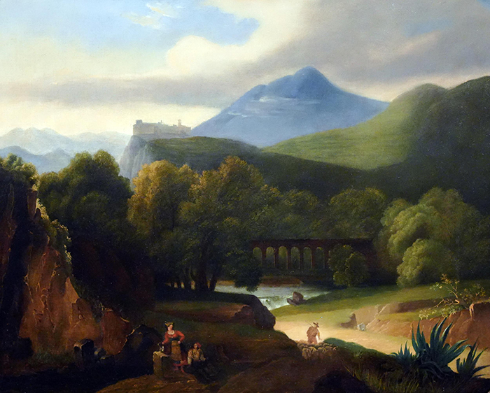 Autore non identificato XIX secolo Paesaggio di montagna del sud olio su tela, cm 65x80 tracce di firma