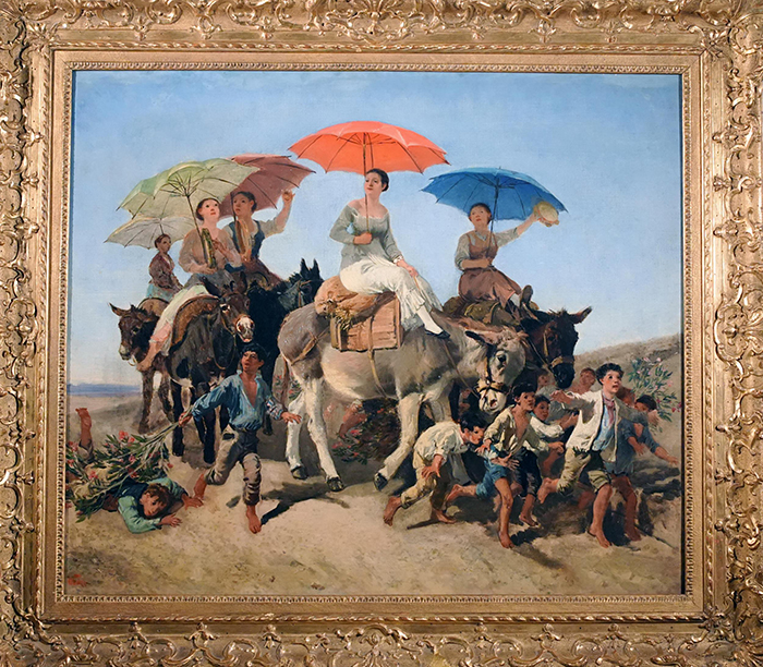Palizzi Giuseppe (Lanciano, CH 1812 - Passy 1888) Processione nuziale olio su tela, cm 77x90 firmato, in basso a sinistra: Palizzi