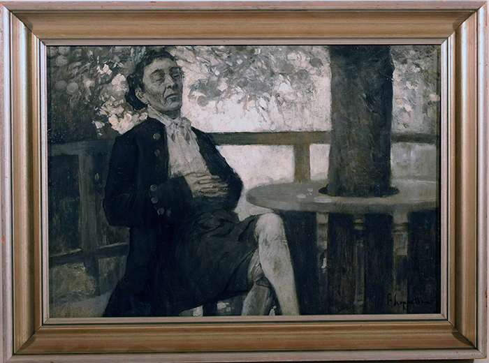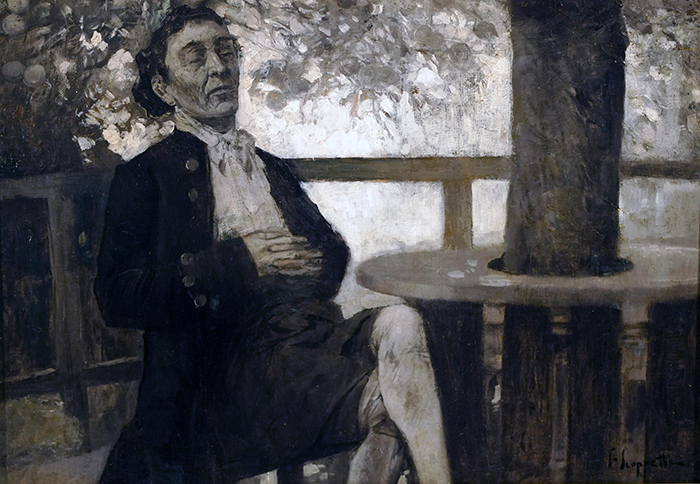 Scoppetta Pietro (Amalfi, SA 1863 - Napoli 1920) Figura d'uomo olio su tela, cm 29x41,5 firmato in basso a destra: P. Scoppetta
