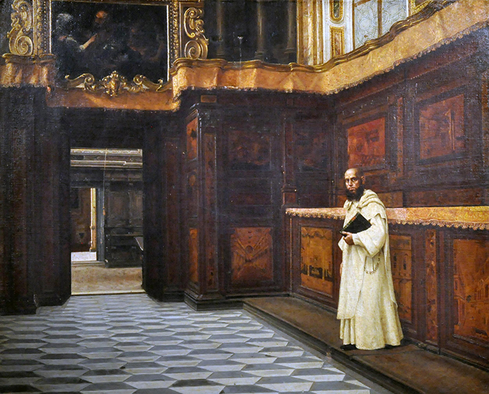Battaglia Domenico (Napoli 1842/44 - dopo il 1921) Interno della Certosa di San Martino olio su tela, cm 52x63