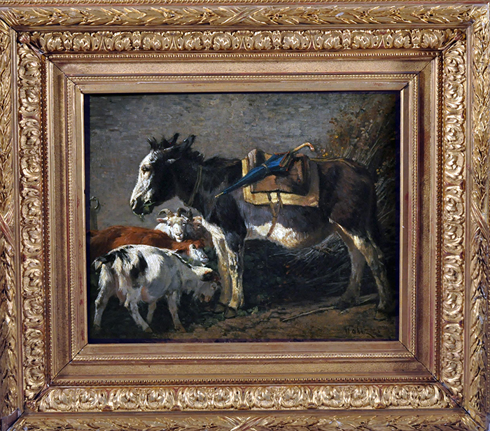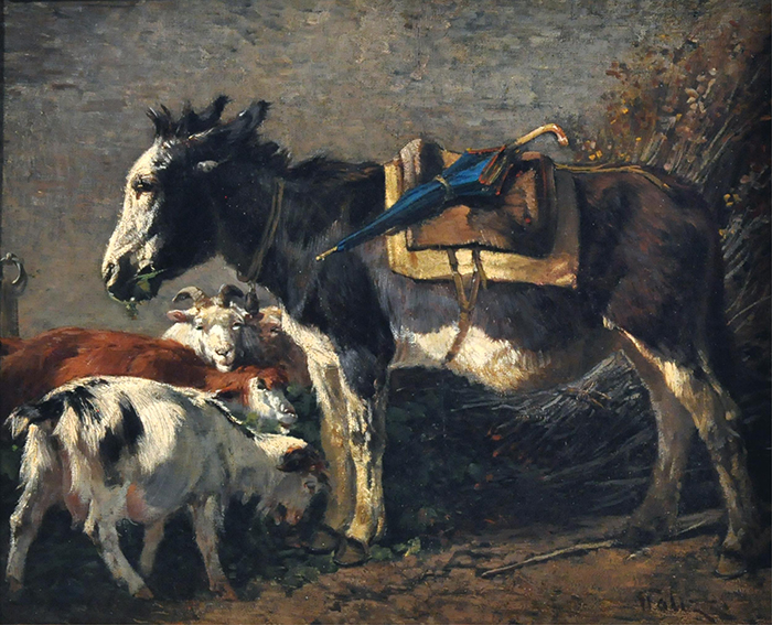 Palizzi Giuseppe (Lanciano, CH 1812 - Passy 1888) Asino e capre olio su tela, cm 35x43 firmato in basso a destra: G. Palizzi