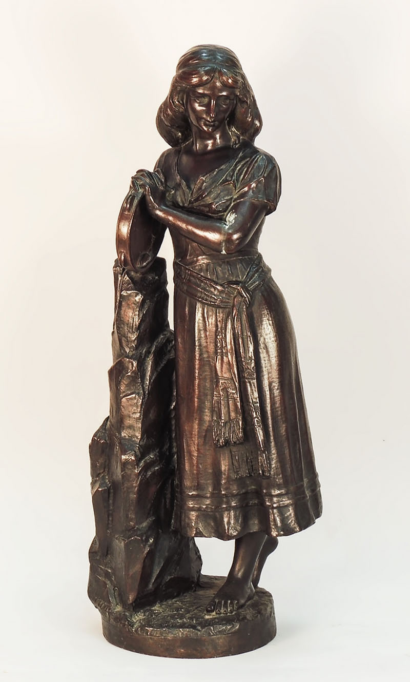 RAGAZZA CON TAMBURELLO - YOUNG GIRL WITH TAMBOURINE seconda metà del XIX secolo - second half of 19th Century scultura in bronzo - bronze sculpture h cm 73