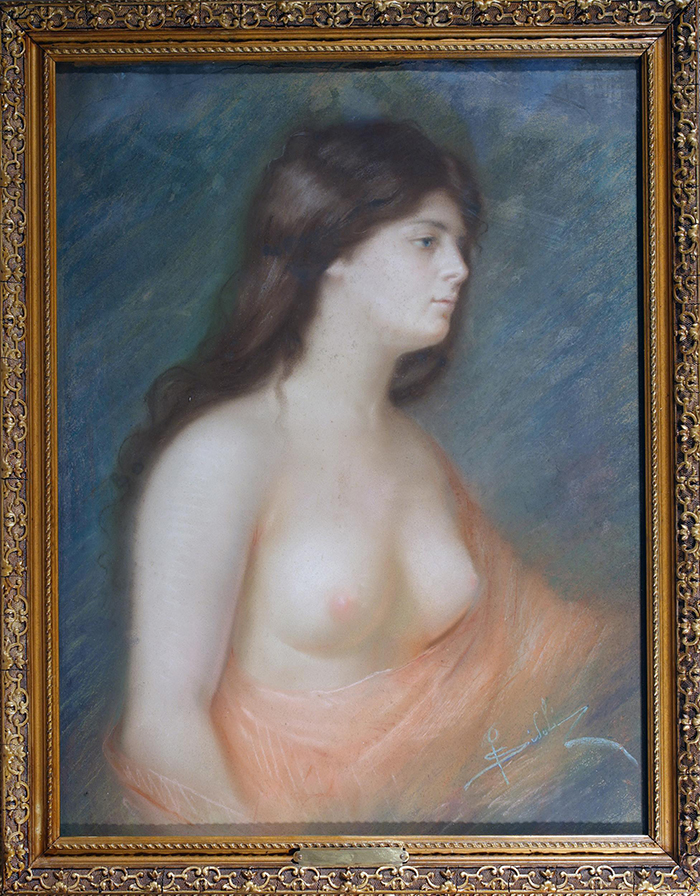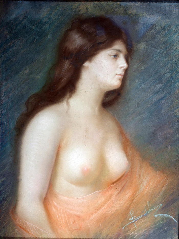 Sidoli Pacifico (Bettola, 1868 – Piacenza, 1963) Figura femminile pastelli su carta, cm 60x46 firmato in basso a sinistra: Pacifico Sidoli
