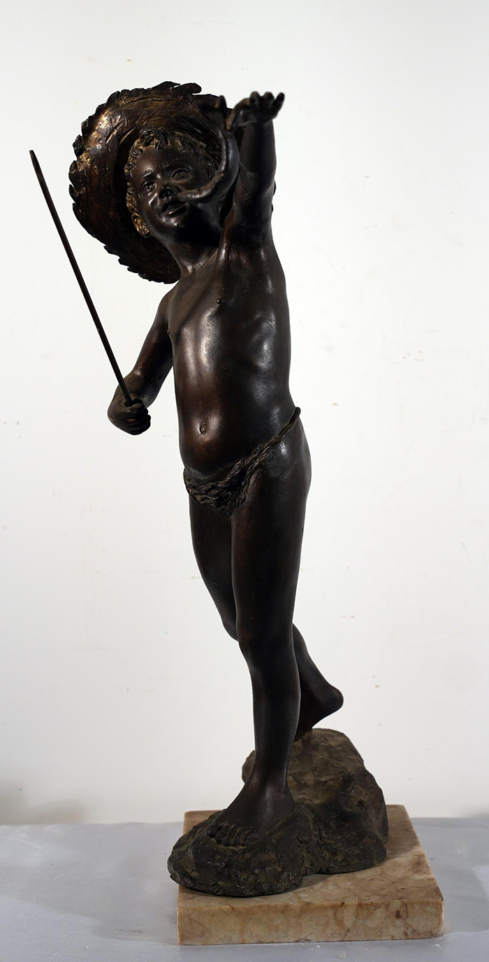 De Martino Giovanni ( Napoli 1970 - 1935) Pescatorello bronzo h. cm 41,5 firmato sulla base: De Martino