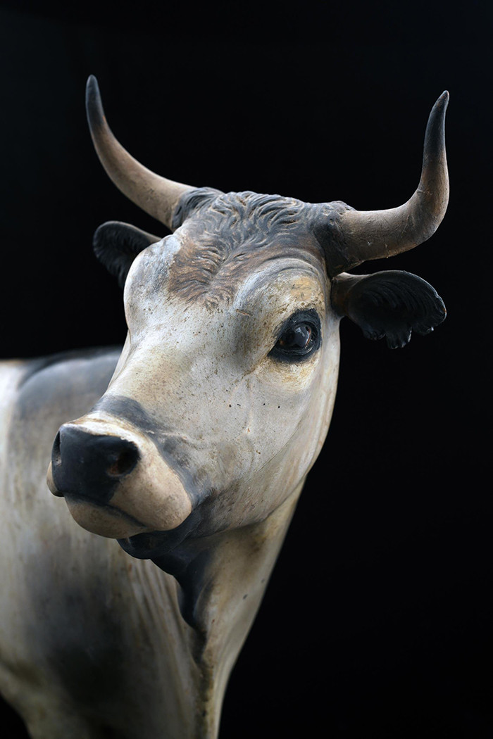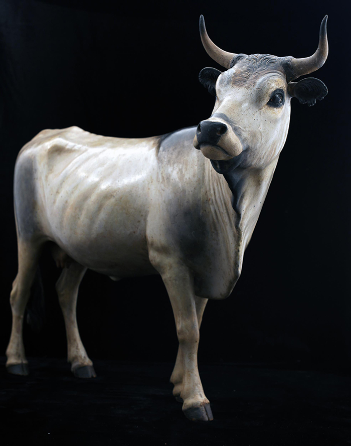 Mucca bianca attrib. Vassallo in legno cm 55x44 Napoli XVIII - XIX secolo