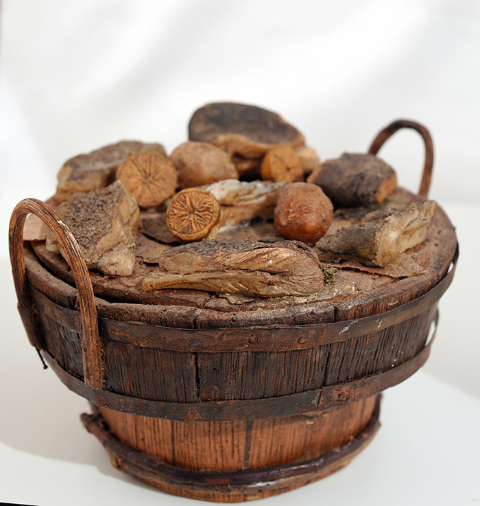 Cesto con baccalà e limoni h cm 9 diametro cm 15,5 Napoli XVIII - XIX secolo