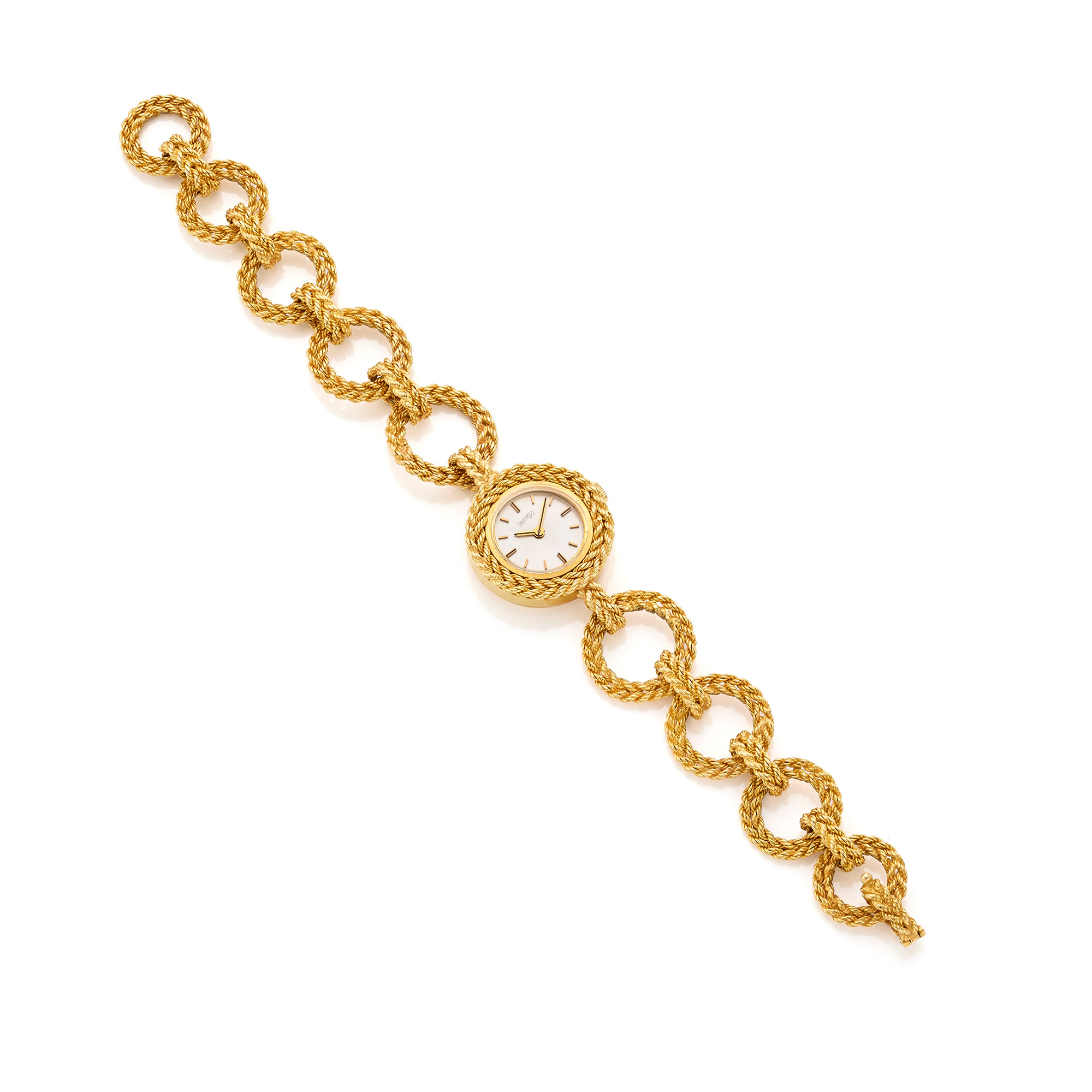 Orologio Eberhard, in oro giallo 18 Kt, con bracciale modulare ad anelli intrecciati e movimento al quarzo. BAtteria da sostituire.
