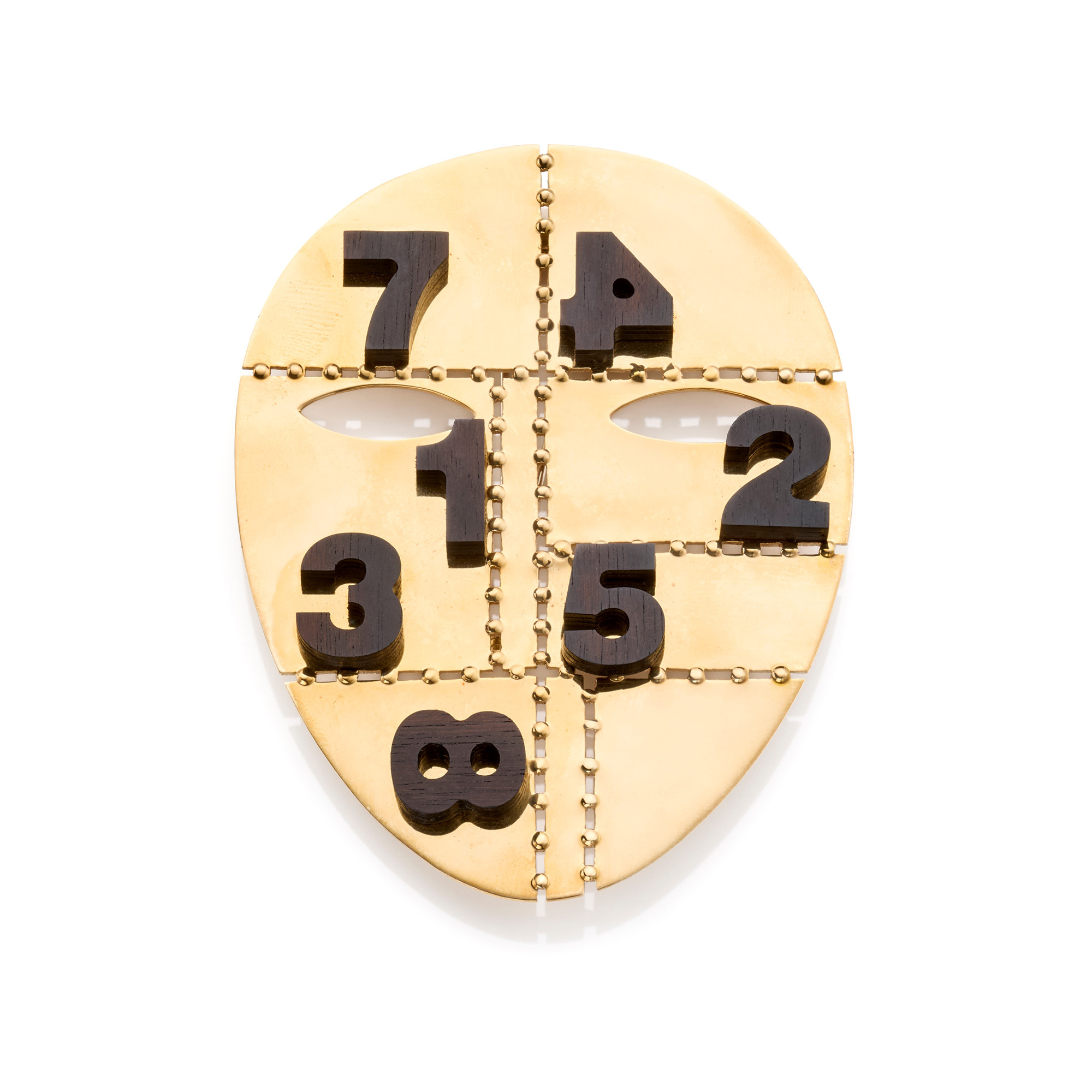 *Spilla realizzata da Mimmo Paladino per Cleto Munari in oro giallo 18 Kt decorata da numeri in ebano. Opera 9/9.