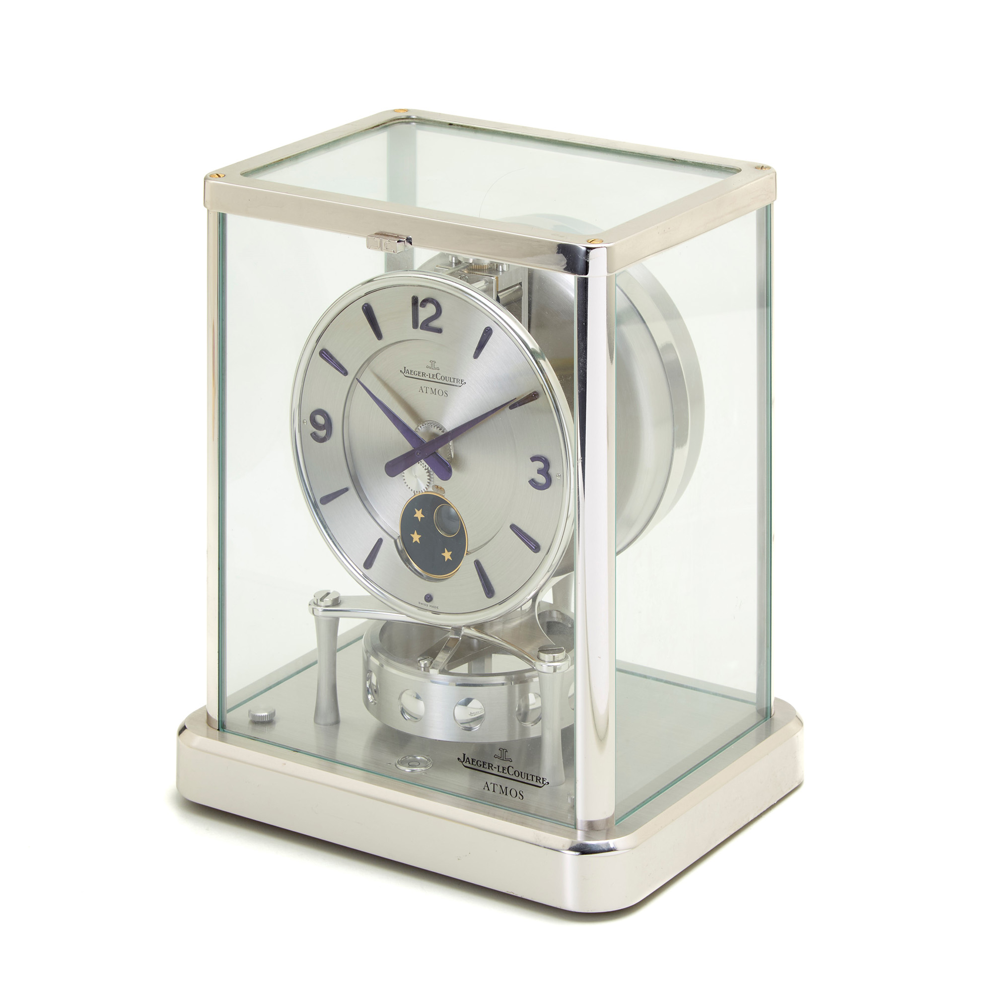 Jaeger-LeCoultre Atmos Classique con fasi lunari in ottone cromato. Movimento meccanico perpetuale a mezzo di un polmone a gas (cal. 540). Ottime condizioni.