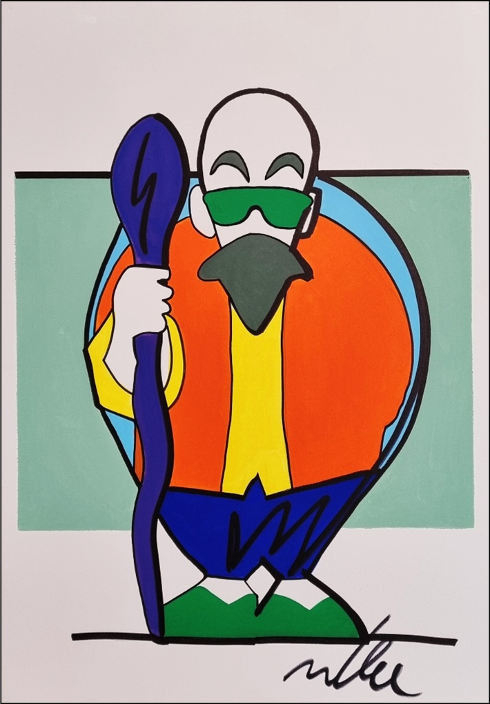 LODOLA MARCO Dorno 1955 "Maestro Muten" Acrilici e smalti su tela cm 70x100 del 2014. Firmato sul fronte in basso a destra. Autentica ed archivio su foto.