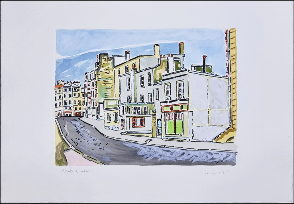 TAMBURI ORFEO Jesi 1910 - Parigi 1994 "Senza titolo" Incisione serigrafica acquerellata a mano, su carta pregiata, cm 50x35, pezzo unico. Firmata sul fronte in basso a destra, dicitura "ritoccata a mano" a sinistra.