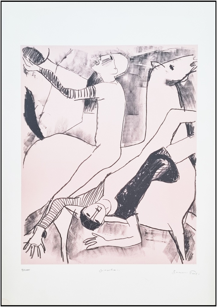 PAOLI BRUNO Firenze 1915 - 2005 "Giocolieri" Litografia su carta cm 50x70. Firma e timbro a secco sul fronte in basso a destra, tiratura 97/100 a sinistra, titolo al centro.