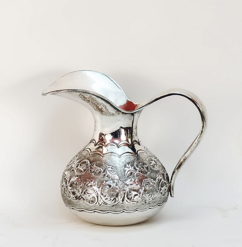 CARAFFA IN ARGENTO - SILVER JUG corpo bombato sbalzato con girali gr 535