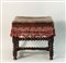 PANCHETTO IN NOCE - WALNUT STOOL gambe a rocchetto riunite da traversa a crociera, imbottito e rivestito in cuoio h cm 52x52x47