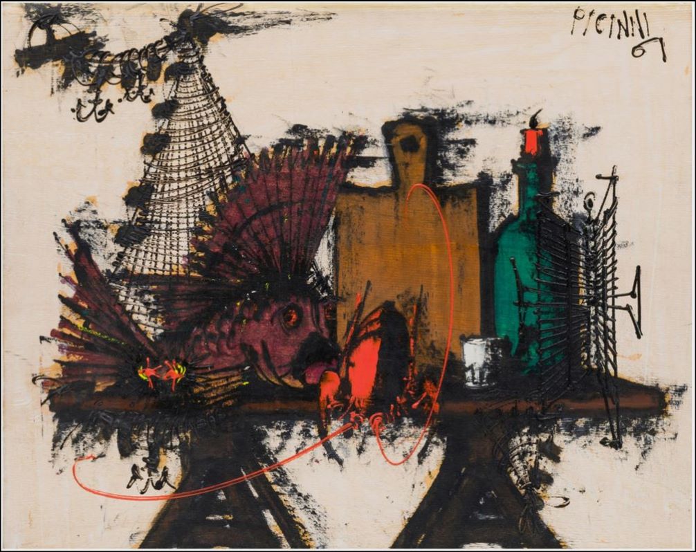 PICCINNI GENNARO Bari 1933 - 2022 "Composizione astratta" Olio su tavola cm 50x40 del 1961. Firmato sul fronte in alto a destra. Sul retro firma e timbro di provenienza.
