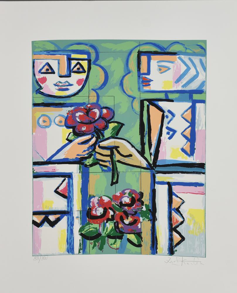 Ibrahim Kodra LE DIEDI UNA ROSA serigrafia, cm 70x50; es. 88/100 firma e...