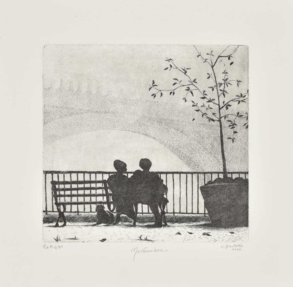 Clotilde Barletta NOVEMBRE incisione su carta, battuta cm 19,5x19,5, su...