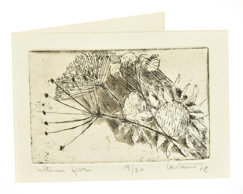 Aldo Castano ULTIMI FIORI incisione su carta, battuta cm 9x14,5, su foglio cm...
