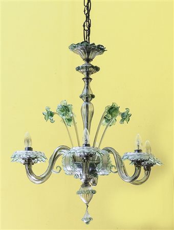 LAMPADARIO IN VETRO SOFFIATO DI MURANO - VENETIAN GLASS CHANDELIER sei bracci...