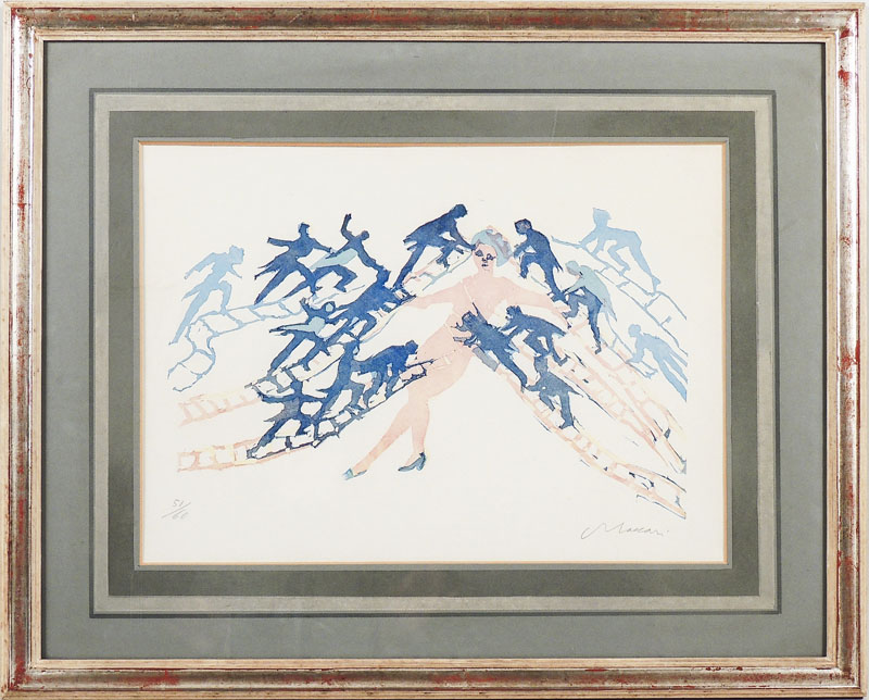 MINO MACCARI (1898-1989) Composizione con figure - Composition with Figures litografia - lithograph, es 51/60, firmata, in cornice cm 42x58