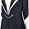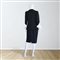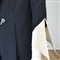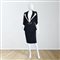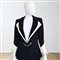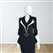 composto da giacca con doppio revers, uno sciallato e l'altro a lancia bianco rifinito con cuciture parallele. I polsi sono ampi, a punta e anch'essi rifiniti a cuciture parallele. La doppia chiusura è ottenuta da una patta interna regolabile e un gancio alamaro gioiello. Gonna a tubino nera, spacco sul retro.