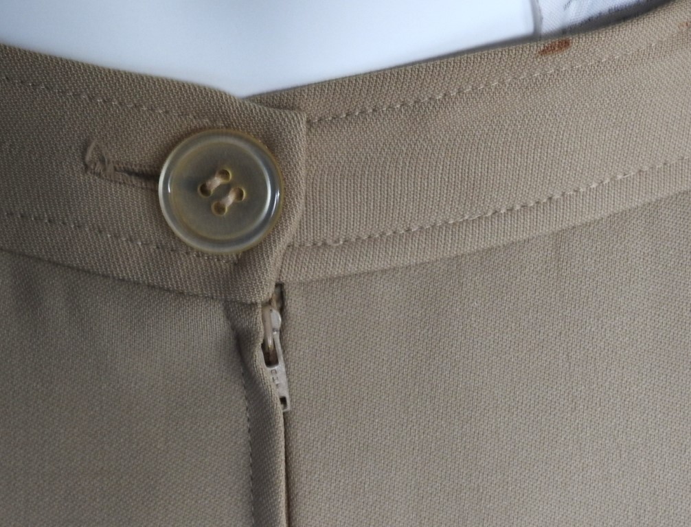 Tailleur misto lana, color beige. Giacca a cinque bottoni, con collo stondato e due