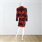 chiusura a cerniera nascosta, a due bottoni arancioni sui polsi. Gonna a tubo classica, sopra il ginocchio, coordinata con giacca,