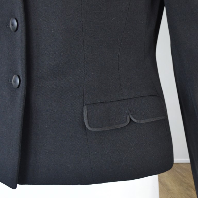 Condizioni ottime, piccolo stappo nella fodera interna, altezza giromanica. Modello e costruzione della giacca d'ispirazione Balenciaga.