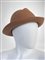 Cappello beige in lana, modello da donna, con cordino e nodo sul retro. Modello Derby.