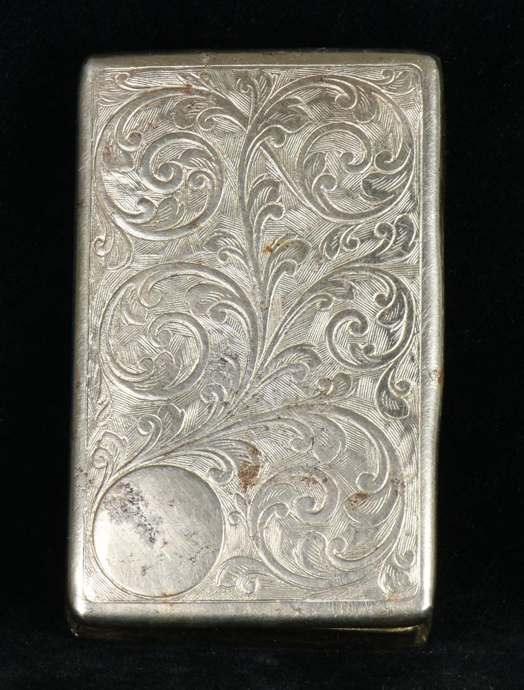 PORTATABACCO in ottone argentato decorato con motivi floreali Francia, anni...