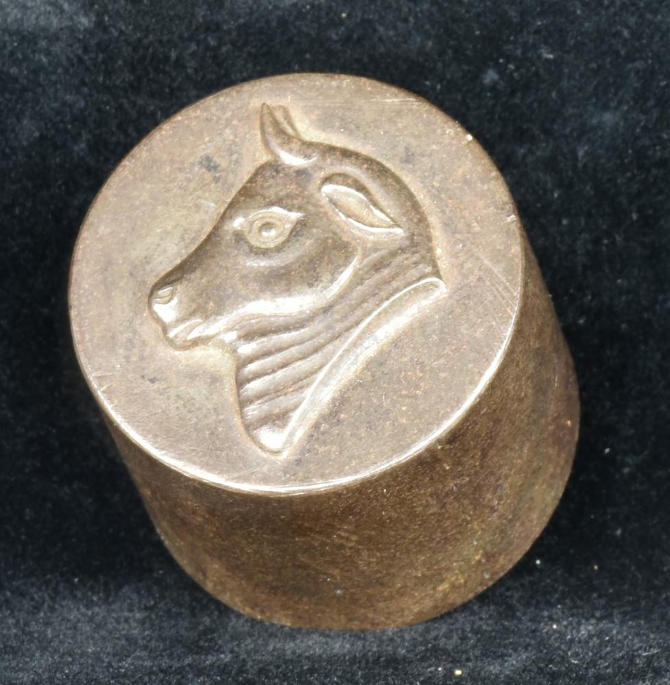 FERMACARTE in piombo con effigie di bue in altorilievo Italia, anni '30 h mm...
