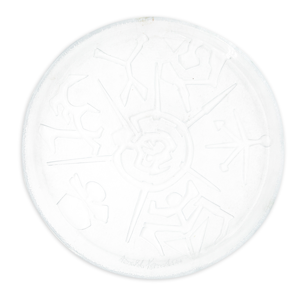 Piatto multiplo in vetro superiore sonoro eseguito dal bozzetto originale di Arnaldo Pomodoro che ne ha curato l'esecuzione