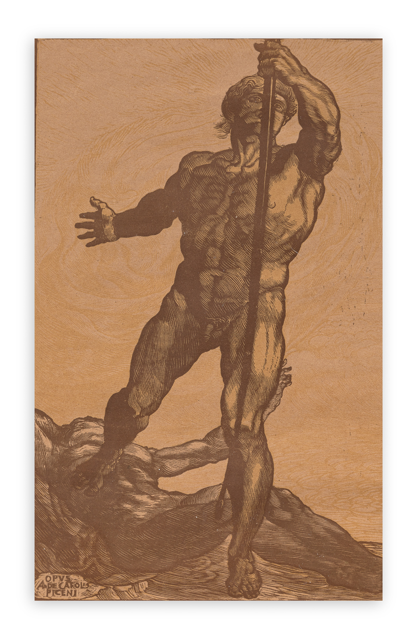 Al fronte, sul legno 'Opus / A. De Carolis / Piceni'