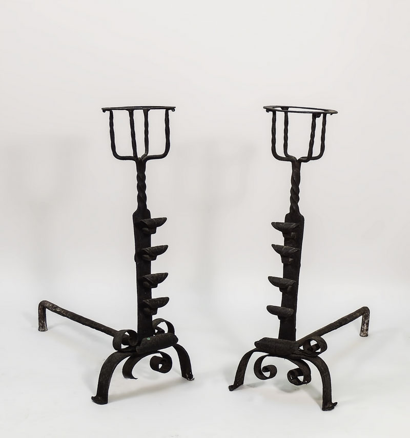 Lotto 838 | COPPIA DI ALARI IN FERRO BATTUTO - PAIR OF WROUGHT IRON ANDIRONS