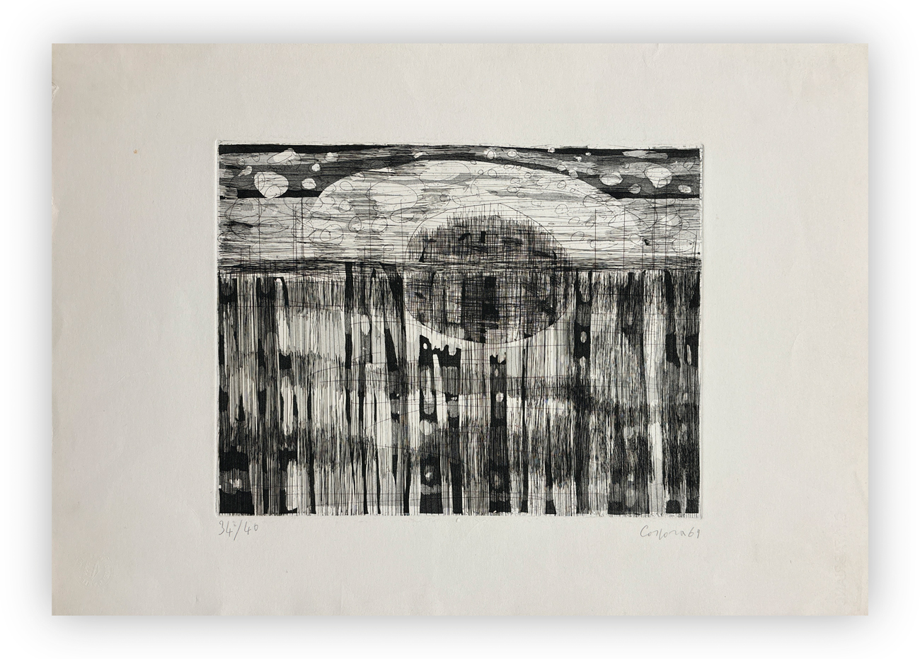 Firma, datazione e numerazione (Esemplare 34/40) a matita al fronte