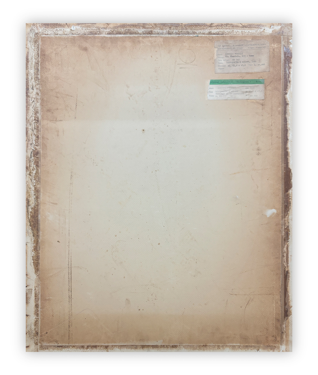 Etichetta della Galleria d'Arte Marlborough (RM) al retro del cartone protettivo